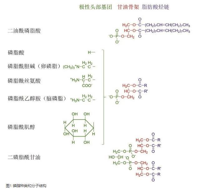 磷脂作為雙親性分子,是一種有代表性的表面活性劑。磷酸甘油酯(phosphoglycerides,PG)是磷脂的主要存在形式,其分子包含一個親水極性頭部和兩個疏水尾部,甘油骨架上1和2位羥基被脂肪酸酯化,3位羥基被連有其他基團的磷酸基酯化(如圖1所示)。磷脂的表面活性與疏水脂肪酸的種類和親水端磷脂酸的極性有關(guān),通常以芘探針法測定臨界膠束濃度表征其表面活性。隨著界面張力儀的應(yīng)用開發(fā),采用Wilhelmy吊片法測定磷脂溶液的表面張力等溫線能夠獲得更多的分子性質(zhì)信息,如表面超量、臨界膠束濃度以及分子橫截面積等,這對于選擇磷脂種類、設(shè)計新型磷脂分子構(gòu)建新型藥物遞送系統(tǒng)具有一定的指導(dǎo)意義。