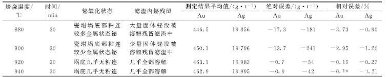 為了配合后面用酸除鉍,首先把鉍氧化,這樣再和酸反應(yīng)的時(shí)候比較容易,用金含量463.8 g/t,銀含量20 037 g/t的粗鉍進(jìn)行鉍氧化實(shí)驗(yàn),結(jié)果見(jiàn)表3。從表3可知920℃鉍氧化已經(jīng)比較完全,全部可以溶于酸,結(jié)果穩(wěn)定性也較好,因此選擇920℃。