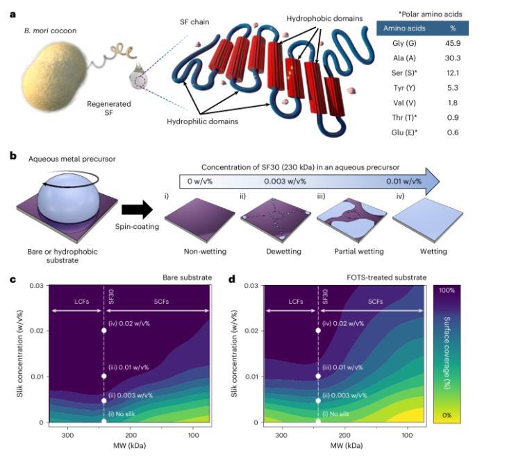 SF作為天然表面活性劑制造納米器件,大大改善疏水表面的水潤(rùn)濕性