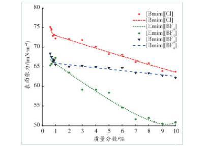 圖1不同質(zhì)量分?jǐn)?shù)離子液體表面張力測試結(jié)果