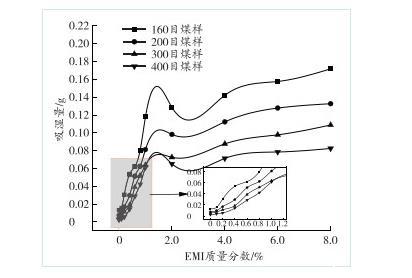 2.3 EMI質(zhì)量分?jǐn)?shù)對煤塵吸濕性的影響