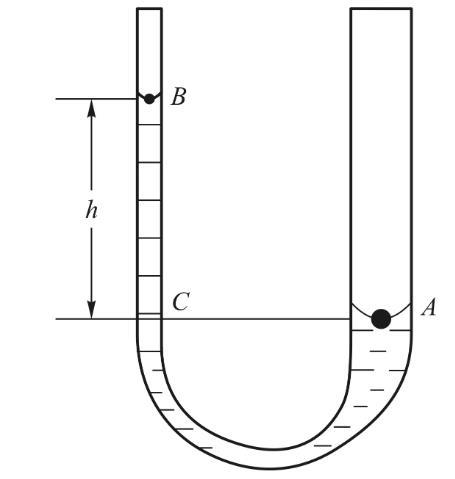 pc為液面下C點(diǎn)處的壓強(qiáng)。此外,在流體靜力學(xué)中,當(dāng)液體靜止時(shí)U型管內(nèi)液面下A點(diǎn)與同水平面的C點(diǎn)壓強(qiáng)相同,即Pa=Pc.所以綜合以上各式可得