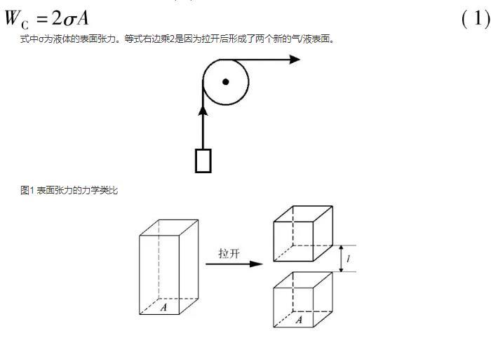 設(shè)想有一柱狀液體,將它拉開分成兩半(圖2)。若液體的橫截面積為A,則不難得到拉開時(shí)需做之功為: