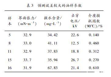 對誤差較大的5組變壓器油樣都發(fā)生了劣化,導(dǎo)致預(yù)測誤差相對較大。