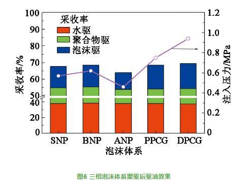 圖6三相泡沫體系聚驅(qū)后驅(qū)油效果
