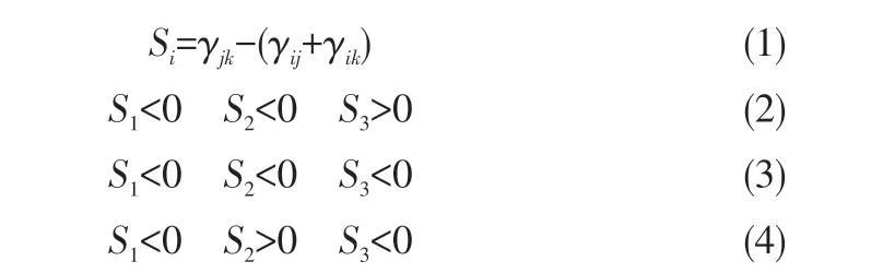 氣液液微分散技術(shù)在萃取分離領(lǐng)域的應(yīng)用是本文的重點(diǎn)關(guān)注對象,通常氣相作為內(nèi)相,萃取劑為中間相,低濃度稀土離子的水溶液為連續(xù)相。對于不同體系,最終所形成的氣液液三相流流型由三相界面張力關(guān)系決定。根據(jù)三相界面張力Torza等引入了鋪展系數(shù)[式(1)],若鋪展系數(shù)滿足式(2),該體系可形成水包油包氣中空液滴結(jié)構(gòu);若鋪展系數(shù)滿足式(3),該體系可形成Janus結(jié)構(gòu);若鋪展系數(shù)滿足式(4),油滴和氣泡將互相分離。對于常見的氮?dú)?P507萃取劑/稀土離子鹽酸水溶液體系,該體系界面張力關(guān)系滿足式(2),可形成穩(wěn)定的水包油包氣結(jié)構(gòu)。連續(xù)相的稀土離子與中間相的萃取劑在界面接觸發(fā)生反應(yīng),實(shí)現(xiàn)了稀土離子從水相到有機(jī)相的傳質(zhì)。在該過程中氣體的引入有兩個獨(dú)特優(yōu)勢:一是中空微液滴的形成增大了傳質(zhì)比表面積,加快反應(yīng)速率;二是與油滴相比中空微液滴的密度大大減小,因此可加速分相。與液液萃取相比,氣液液微分散萃取技術(shù)具備傳質(zhì)快及易分相的特點(diǎn),有望解決大相比萃取過程中萃取效率低、易乳化等問題。