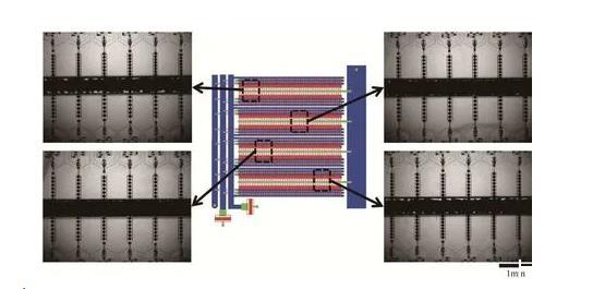 目前制約微流控技術(shù)實(shí)際應(yīng)用的重要因素是其處理通量低,無法滿足實(shí)際工業(yè)生產(chǎn)的需求。以上述微通道中萃取稀土離子為例,該過程連續(xù)相的流量僅為4mL/min,顯然不能滿足大量浸礦廢水處理的需求。目前關(guān)于微萃取設(shè)備的放大主要有兩種途徑。其中,微通道并行放大是大規(guī)模生產(chǎn)乳液和氣泡的一種常用可靠途徑。Jeong和Chen等設(shè)計(jì)了一種并行聚焦流微通道用來制備氣液液雙乳液,實(shí)現(xiàn)了在10cm×10cm的PDMS上并行了400個聚焦流微通道(圖7)。雙乳液的生產(chǎn)通量可達(dá)3L/h,可在1h內(nèi)制備1011個高度單分散的中空液滴。利用該設(shè)備進(jìn)行稀土離子的萃取結(jié)果表明相比于單一微通道結(jié)構(gòu),該設(shè)備的處理通量提高了10倍,且稀土離子的萃取率可在數(shù)秒內(nèi)提高至98%以上。本文作者所在的研究團(tuán)隊(duì)發(fā)明的膜分散微萃取設(shè)備同樣可以實(shí)現(xiàn)微通道萃取設(shè)備的有效放大,對于膜分散微萃取設(shè)備,其分散介質(zhì)為含有眾多規(guī)則排列微孔的不銹鋼薄膜,每個微孔相當(dāng)于一個微通道,其處理量可提高到200mL/min;該團(tuán)隊(duì)進(jìn)一步發(fā)明多通道膜分散微結(jié)構(gòu)設(shè)備,已經(jīng)成功應(yīng)用到萬噸級/年處理量的氣體吸收和液液萃取過程,為稀土萃取回收過程放大提供了堅(jiān)實(shí)的基礎(chǔ)。從氣液液微分散萃取過程的放大研究進(jìn)展來看,處理通量已經(jīng)不再成為制約其發(fā)展的問題,多通道膜分散微萃取設(shè)備有望實(shí)現(xiàn)高通量快速富集回收稀土離子的目標(biāo)。
