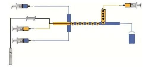 已有的研究結(jié)果表明微尺度氣液液三相流具有獨(dú)特的流動、傳遞及反應(yīng)規(guī)律,在化學(xué)反應(yīng)、材料制備、萃取分離等多個領(lǐng)域均有著重要的應(yīng)用。在化學(xué)反應(yīng)領(lǐng)域,Onal等曾以氫氣作為氣相,不飽和醛類為連續(xù)相,催化劑的水溶液為分散相,在該體系中系統(tǒng)研究了不飽和醛類選擇性加氫的過程并揭示了反應(yīng)動力學(xué)。在材料制備領(lǐng)域,Lee等曾以氮?dú)庾鳛閮?nèi)相,含有硅納米顆粒的甲苯溶液作為中間相,連續(xù)相為2%PVA水溶液。在該體系中隨著雙乳液油相中甲苯溶劑的揮發(fā),逐漸形成了硅納米顆粒堆積殼層的中空微球。