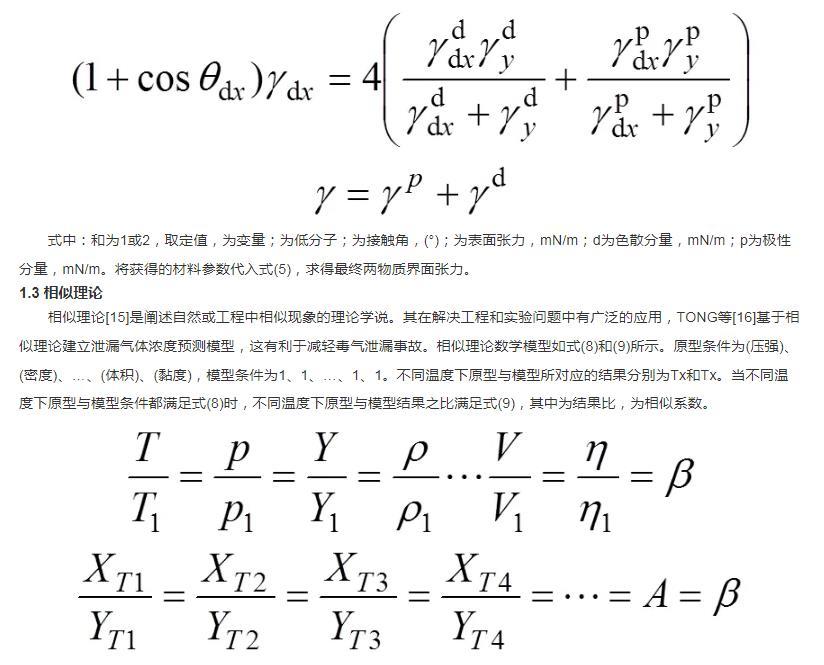 本文中原型與模型分別是指接觸角法與調(diào)和平均法,實(shí)驗(yàn)材料及儀器相同,原型條件是測(測試溫度)、加(加熱時(shí)間)、靜(靜置時(shí)間)、(液滴體積)、(標(biāo)準(zhǔn)大氣壓);模型條件是測1(測試溫度)、加1(加熱時(shí)間)、靜1(靜置時(shí)間)、1(液滴體積)、1(標(biāo)準(zhǔn)大氣壓)。當(dāng)相似系數(shù)為1時(shí),采用調(diào)和平均法修正接觸角法。