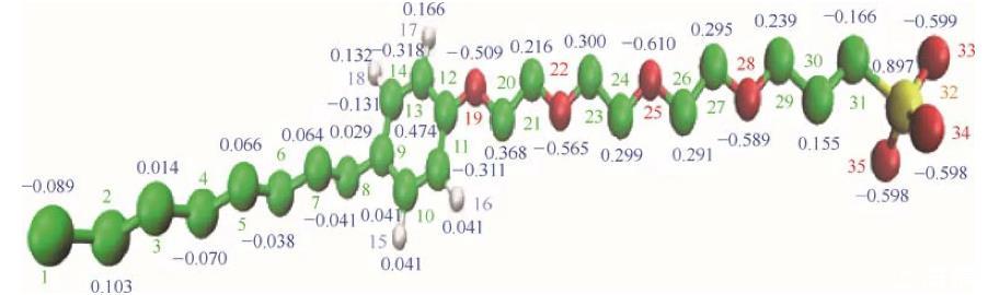 圖1辛基酚聚氧乙烯醚磺酸鹽的分子結(jié)構(gòu)以及電荷分布