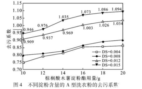 圖4不同淀粉含量的A型洗衣粉的去污系數(shù)