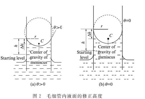 圖2毛細(xì)管內(nèi)液面的修正高度