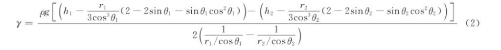 將Δh代入表面張力計(jì)算公式,得到式(2):
