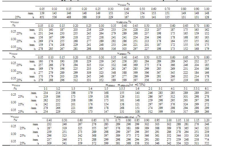 由表3可見,單一的YM-316溶液即可滿鋪在環(huán)己烷表面,表現(xiàn)出較強(qiáng)的鋪展性能。其中,最低鋪展質(zhì)量分?jǐn)?shù)為0.05%,此時(shí)鋪展時(shí)間為301.3s。隨著YM-316質(zhì)量分?jǐn)?shù)不斷增大,鋪展時(shí)間不斷減小,當(dāng)YM-316質(zhì)量分?jǐn)?shù)達(dá)到1.0%時(shí),鋪展時(shí)間降低至5.8s。另外,在YM-316分別與APG0810和APEC-10Na的二元復(fù)配體系中,當(dāng)YM-316的質(zhì)量分?jǐn)?shù)為0.25%、0.30%和0.35%時(shí),在質(zhì)量分?jǐn)?shù)為0.055%~1.0%的范圍內(nèi),隨著APG0810或APEC-10Na濃度的增加,其體系的鋪展時(shí)間逐漸縮短,這種趨勢(shì)在低濃度區(qū)域較高濃度區(qū)域要大;而在APG0810或APEC-10Na相同濃度下,隨YM-316質(zhì)量分?jǐn)?shù)增加其體系的鋪展時(shí)間也逐漸縮短。這些均表明YM-316與APG0810或APEC-10Na對(duì)環(huán)己烷表面的鋪展作用有良好相互促進(jìn)效果,YM-316與APG0810和APEC-10Na組成的三元復(fù)配體系也是如此,且三元體系的鋪展性能比二元體系更好。氟表面活性劑的成本常常占到水成膜泡沫滅火劑成本的80%,APG0810和APEC-10Na作為一種良好的鋪展助劑,添加到含YM-316的滅火劑中,可在保持溶液原有鋪展性能的情況下,大幅降低YM-316的用量,從而大大降低水成膜泡沫滅火劑的成本。