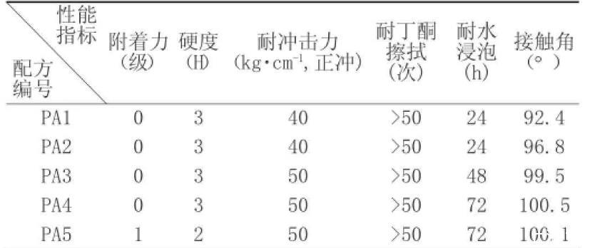在制得不同配方的涂料之后(PA1-PA5),我們進(jìn)一步制備了相應(yīng)的水性氟丙樹(shù)脂涂料涂膜,其性能指標(biāo)見(jiàn)表3。