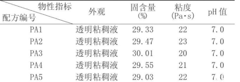 由表1,隨著配方中含氟丙烯酸酯單體A的含量的提高(從P1到P5配方),樹(shù)脂的固含量(從68.79%提高到73.87%)和粘度(從13450mPa·s增加到17110mPa·s)也隨之提高,說(shuō)明加入含氟丙烯酸酯單體能改善所合成樹(shù)脂的性能。此外,實(shí)驗(yàn)中所有配方測(cè)得的pH值均為7.0,說(shuō)明含氟單體的加入對(duì)樹(shù)脂的pH值影響不大。