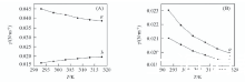 圖7示出了正辛烷和苯作為稀釋劑時,界面張力隨溫度升高的變化情況。溫度對兩相界面性質(zhì)的影響比較復雜,尚未見溫度對純稀釋劑體系界面張力影響的報道。本文發(fā)現(xiàn)純稀釋劑條件下界面張力均隨著溫度的升高而降低,這可能是由于溫度升高導致界面分子動能增加,熱運動加劇,分子間引力減弱,從而使界面張力降低。這與水的表面張力隨著溫度升高而降低的情況相似。