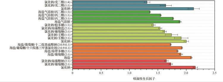 在實驗室中通過吸濕串聯(lián)差分電遷移率分析儀測量給定RH下的粒徑與干粒徑的比值,以通過吸濕性生長因子來量化吸濕性。最近許多研究關(guān)注到表面活性物質(zhì)對顆粒吸濕性的影響。圖4總結(jié)了當(dāng)前一些研究中量化的表面活性物質(zhì)對SSA模擬物吸濕性的影響。