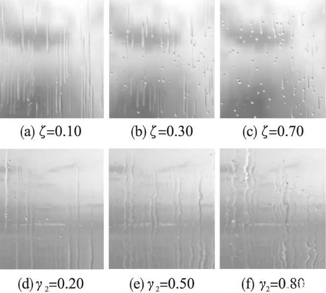 在未來工作中,將繼續(xù)對玻璃窗上水滴的運動控制進(jìn)行研究,包括玻璃窗表面粗糙度對水滴尾部褪色的影響,玻璃窗平移或旋轉(zhuǎn)對水滴運動行為的影響等,完善水滴運動細(xì)節(jié),進(jìn)一步在流固界面動力學(xué)模擬方面做有益探索。