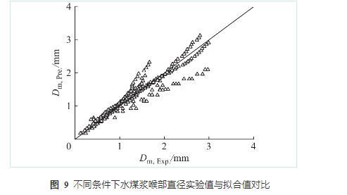 圖9不同條件下水煤漿喉部直徑實(shí)驗(yàn)值與擬合值對(duì)比