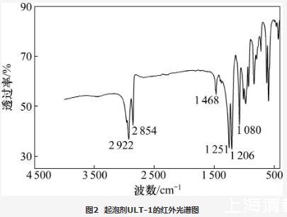 2)利用紅外光譜、質(zhì)譜進行新型起泡劑ULT-1分子結(jié)構(gòu)表征,起泡劑ULT-1分子中具有硫酸酯鍵、醚鍵、碳氫鍵等官能團,與分子結(jié)構(gòu)設(shè)計一致。