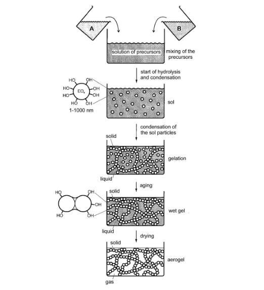 圖3氧化硅氣凝膠溶膠~凝膠法的制備過(guò)程
