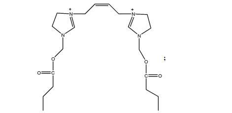 1,4-二((丁酰氧基)-3-甲基咪唑啉)丁烯的制備方法,包括:N-羥甲基咪唑啉和酰氯在四氫呋喃中反應(yīng),旋蒸得到產(chǎn)物,產(chǎn)物經(jīng)洗滌后,加入正己烷和1,4-二溴丁烯攪拌反應(yīng),過(guò)濾后得到1,4-二((丁酰氧基)-3-甲基咪唑啉)丁烯。