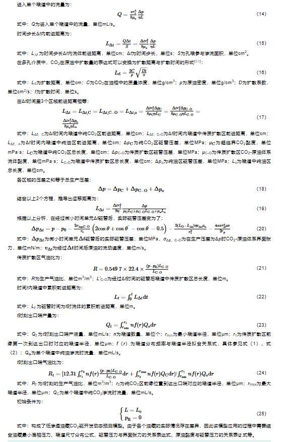 CO2驅(qū)能有效提高低滲透油藏采收率,但由于低滲透油藏普遍存在強非均質(zhì)性,導致CO2驅(qū)開發(fā)動態(tài)難以準確預測。針對該問題,在綜合考慮喉道大小及分布、CO2溶解降黏和界面張力變化等因素的基礎(chǔ)上,結(jié)合CO2驅(qū)滲流力學理論,建立了基于時間節(jié)點的低滲透油藏CO2驅(qū)開發(fā)全過程動態(tài)預測模型。
