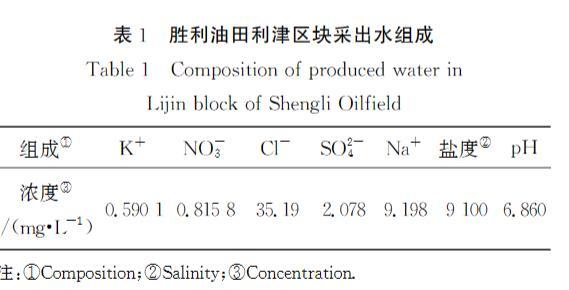 實驗試劑:葡萄糖、檸檬酸鈉、酵母粉、KH2PO4、(NH4)2SO4、MgSO4·7H2O、乙酸乙酯為分析純,購自國藥集團(tuán)化學(xué)試劑有限公司;正己烷為優(yōu)級純,購自Merck公司;二氯甲烷為優(yōu)級純,購自B&J公司;正構(gòu)烷烴混合標(biāo)準(zhǔn):C8—C40包含異構(gòu)烷烴姥鮫烷和植烷,購自Accustandard公司;層析硅膠(100~200目)及硅膠層析板購自青島海洋化工廠;原油采集自中國石化勝利油田有限公司利津區(qū)塊;降解實驗用水根據(jù)勝利油田利津區(qū)塊采出水組成配置(見表1),采出水中pH、鹽度用多參數(shù)儀(Manta3.0,Eureka,美國)測定,K+、NO-3、Cl-、SO2-4、Na+等離子依據(jù)SY/T5523—2016《油田水分析方法》中給出的檢測方法檢測。
