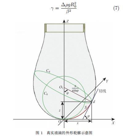 式中,?p? 為參考點 O 處的液滴分界面處的內(nèi)外壓力差;?p_d 為液滴表面 d 點處的液滴分界面處的內(nèi)外壓力差;?ρ 為氣液兩相的密度差;g 為當?shù)刂亓铀俣?,取值?9.7967 m·s?2;k?、k_L 和 k_d 分別為參考點 O 處的曲率、d 點在 Z ? X 坐標平面的曲率以及 d 點在 Z ? X 正交平面的曲率,其值分別為 k? = 1/R?,k_L = dφ/ds 和 k_d = sinφ/x。