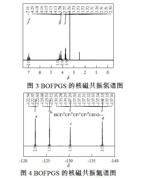 結(jié)合以上數(shù)據(jù)分析可知,本研究成功合成了2,3-雙八氟戊烷基-1-丙醇和BOFPGS。