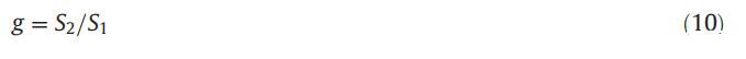 在迄今為止研究的所有情況下,無論是在純水中還是在二甘醇-水二元混合物中,我們觀察到電導(dǎo)在cmc前后以不同的速率增加。在cmc以下,兩親性分子是非締合的,表現(xiàn)為1:1電解質(zhì),并遵循Debye-Huckel-Onsager方程[58,59],而在cmc以上,表面活性劑分子聚集并形成膠束[58,60]。cmc以上純CET、[C10min][Cl]和CET+[C10min][Cl]混合物的電導(dǎo)率急劇下降是由于膠束的形成導(dǎo)致材料的質(zhì)量急劇增加,表面電荷密度凈降低。根據(jù)電導(dǎo)率與摩爾濃度圖中膠束后區(qū)域(S2)與膠束前區(qū)域(S1)中兩條相交直線的斜率之比計(jì)算g值,并可使用公式(10)[61]計(jì)算:
