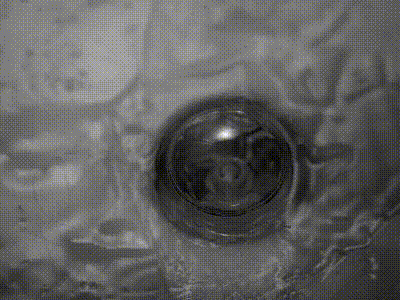 這個(gè)結(jié)論對(duì)于高粘度液體同樣成立嗎?在這類粘性液體中,氣泡破裂的速度要慢得多,破裂過(guò)程可能需要1秒,并且破裂的方式也與低粘度液體不同:它們會(huì)自行向內(nèi)坍塌,從而造成結(jié)構(gòu)不穩(wěn)定,直觀表現(xiàn)就是氣泡周圍出現(xiàn)徑向的褶皺。