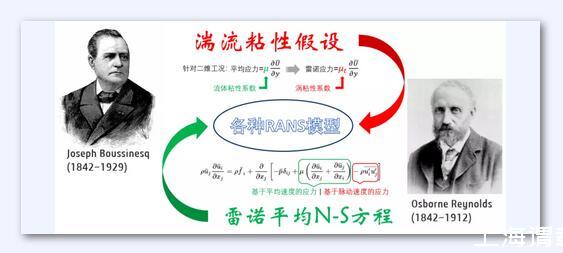 湍流粘性來源于雷諾平均的N-S方程,下式中多出來的脈動應力項,稱之為雷諾應力。1877年Boussinesq借助于牛頓切應力公式,提出了影響深遠的渦粘性假設(shè):雷諾應力正比于時均速度梯度,其中比例系數(shù)μt表征了湍流脈動引起的切應力效應,稱為渦粘性系數(shù)。