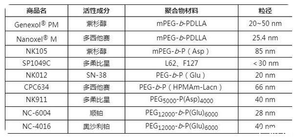Genexol PM以聚乙二醇-聚乳酸(mPEG-b-PDLLA)為載體材料,粒徑在20~50nm,不使用聚氧乙烯菌麻油(Cremophor EL)降低發(fā)生嚴(yán)重過敏性反應(yīng)的可能性;Paclical則使用新型輔料XR-17(維生素A的類似物),XR-17能與水溶性物質(zhì)形成膠束,包裹紫杉醇后能自組裝形成粒徑在20~60nm的膠束,將包載的藥物分子遞送至靶標(biāo)后,輔料在體內(nèi)被快速代謝清除。