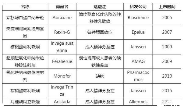 表6已上市的部分納米粒注射劑