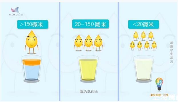 油是怎么存在水中的?油在水中的存在形式,根據油滴的粒徑,可以分為三類,油滴粒徑大于150微米稱為“浮油”,這也是油進入水體的主要存在形式;油滴粒徑在20-150微米之間稱為“分散油”;油滴粒徑小于20微米的稱為“乳化油”。不管是表面活性劑穩(wěn)定的油滴,還是無表面活性劑穩(wěn)定的油滴,極小的乳化油以油包水或水包油的形式懸浮于水中。