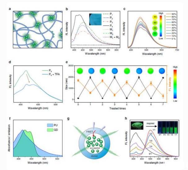 而當去除三氟乙酸后,熒光和粒徑又會恢復,并能進行多次循環(huán)。這種構象介導的變形現(xiàn)象和變色現(xiàn)象,與水母在呼吸時隨著膨脹和收縮,所表現(xiàn)出的熒光轉變行為十分相似。