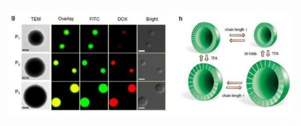 他們還發(fā)現(xiàn),當采用剛性折疊構象和納米管形態(tài)時,可以產生更好的入胞效果。由于兩親性納米載體具有超高響應性,故能在腫瘤細胞內快速釋放有效藥物,并可以將阿霉素有效遞送到細胞核中。