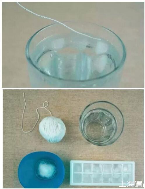 實(shí)驗(yàn)材料:一杯水、冰塊、繩子、食用鹽