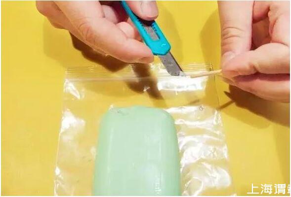3.用小刀在肥皂刮下一小塊,將刮下的肥皂嵌入劈開(kāi)的牙簽中。