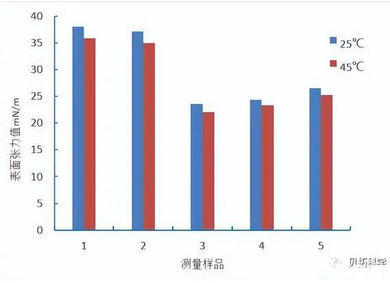 測(cè)量?jī)x器:貝拓的KF100專家型表面張力儀測(cè)量溫度:25℃和45℃