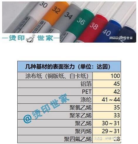 燙印對(duì)于承印基材的達(dá)因值要求: