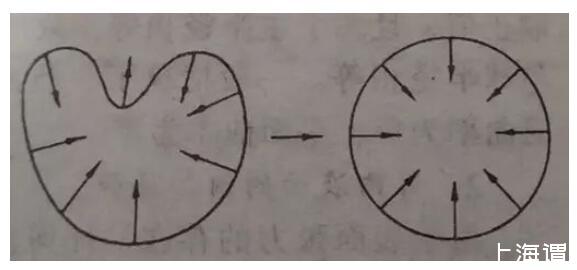 當(dāng)你吹泡泡的時(shí)候,無論用什么泡泡圈,吹出來的泡泡都是近球形的,童鞋們會懊惱為什么:不能吹個(gè)泡泡都是愛你的形狀呢?從受力分析而言,當(dāng)泡泡為不規(guī)則形狀時(shí),其相鄰的兩點(diǎn)曲率不一樣,則表面張力方向不一樣,根據(jù)受力分析,水會向合力的方向流動(dòng),最后平衡狀態(tài)為相鄰兩點(diǎn)受力一致,曲率一致。推廣到整體,就是一整個(gè)球體形狀的形成。