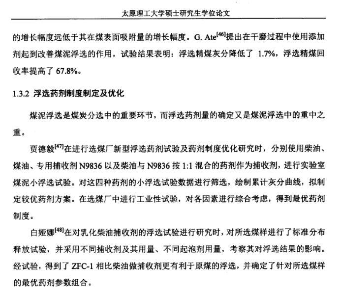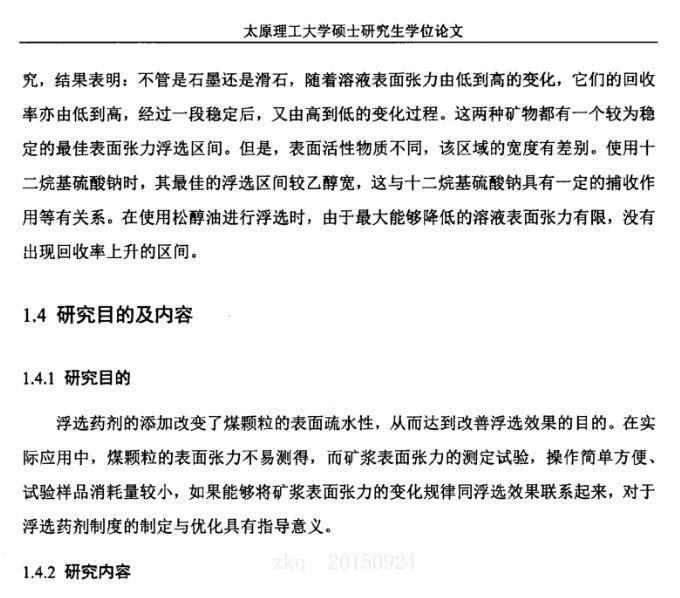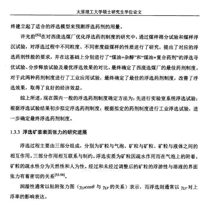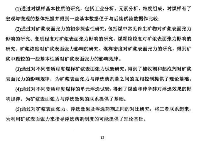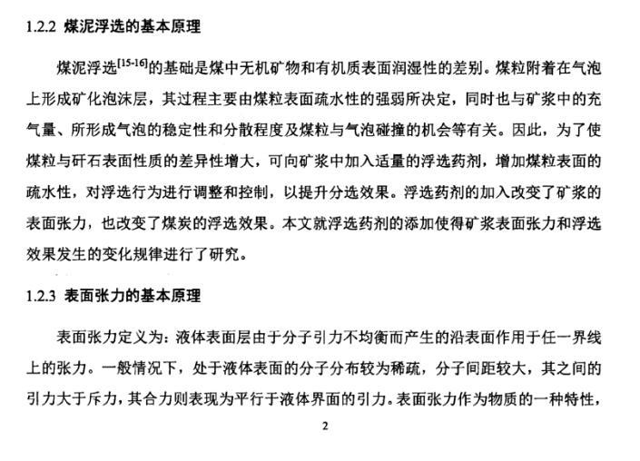 【摘要】:隨著浮選入料中高灰細(xì)泥含量的逐漸增高,浮選效果惡化的問題越來越突出。煤泥浮選是煤炭分選中的重要環(huán)節(jié),合理的浮選藥劑制度是實(shí)現(xiàn)煤泥高效浮選的關(guān)鍵因素。本文就浮選效果與礦漿表面張力的關(guān)系進(jìn)行了研究,對試驗(yàn)煤樣進(jìn)行了工業(yè)分析、元素分析、粒度分析及XRD分析,發(fā)現(xiàn)煤樣中小于0.045mm粒級含量較多,且灰分較高,易泥化。煤樣中含有的伴生礦物種類基本相同,主要包括高嶺土、蒙脫石、石英及黃鐵礦四種。