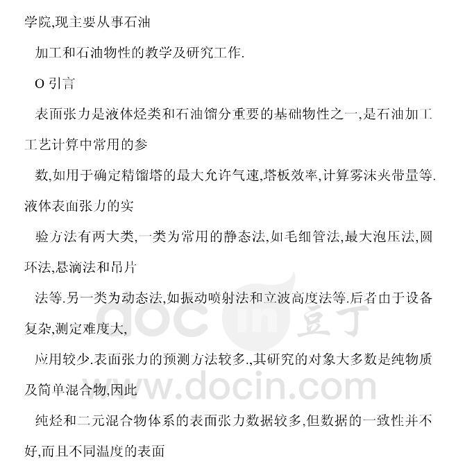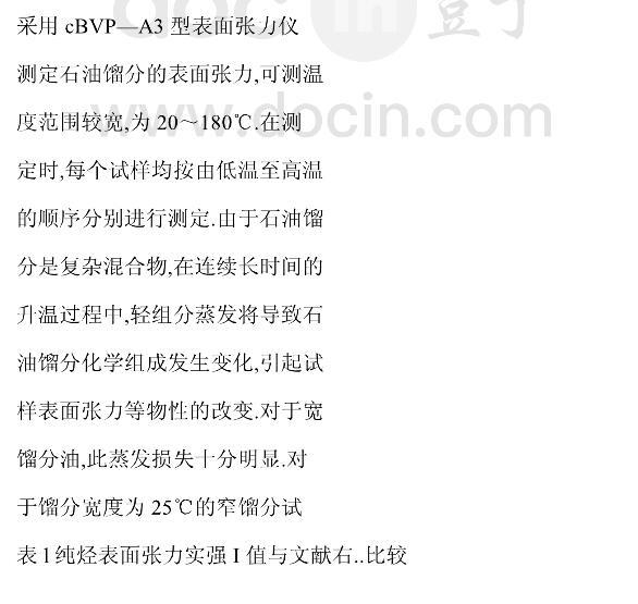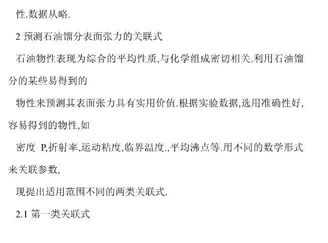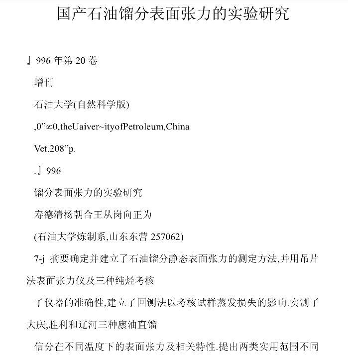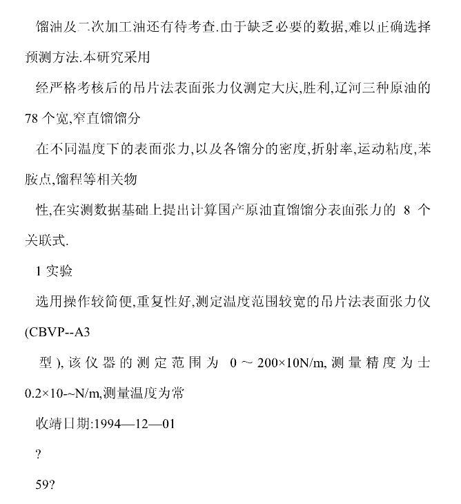 國產(chǎn)石油餾分表面張力的實(shí)驗(yàn)研究