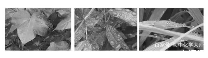 圖1.水在三種不同植物葉片表面的形態(tài)特征