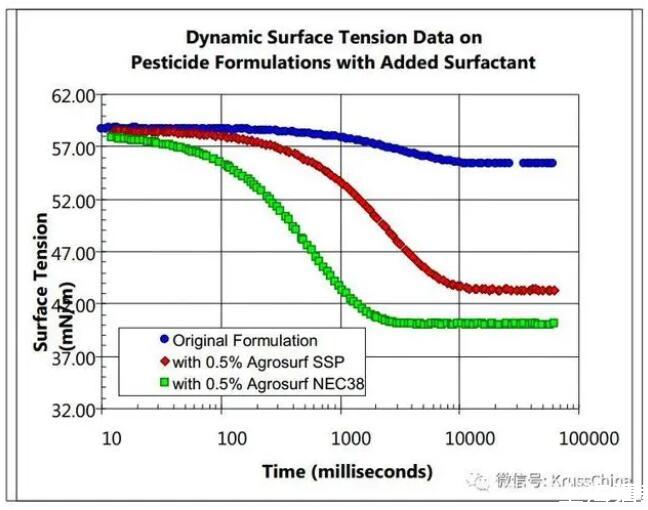 圖2.不同表面活性劑農(nóng)藥的動(dòng)態(tài)表面