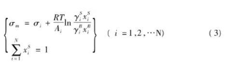 大多數關于液體混合物表面張力的描述都是建立在將液體表面層看作是一個氣液相之間的獨立的體系的假設之上的,基于這一假設,結合經典熱力學理論,可導出關于液體混合物表面張力的計算公式Bulter首先于1932年從熱力學理論出發(fā),導出液體混合物表面張力的理論公式: