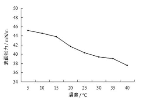 將配制好的合成血液分別放置5℃~40℃的環(huán)境中1小時,然后取出測定其表面張力,每個溫度連續(xù)測定5次并取其算術(shù)平均值作為表面張力的結(jié)果。